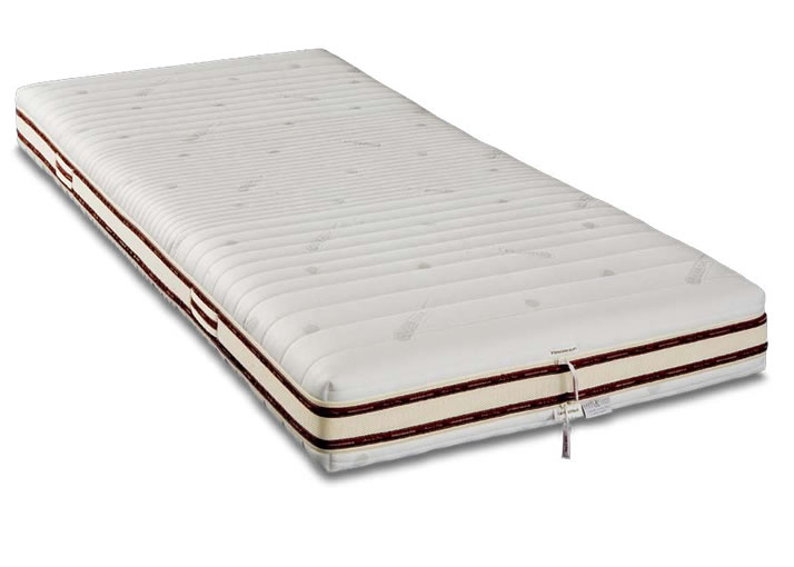 Materasso per letti modello Centonovanta, a molle e rigido, è progettato per accogliere ergonomicamente il corpo, facendogli assumere una postura ottimale. Realizzato con rivestimenti naturali, è completamente sfoderabile e presenta un lato in lana e uno in cotone, per un comfort perfetto in ogni stagione. Un materasso ortopedico singolo, matrimoniale e a piazza e mezza, antiacaro e anallergico, permette di prevenire le allergie e migliorare la qualità del sonno.