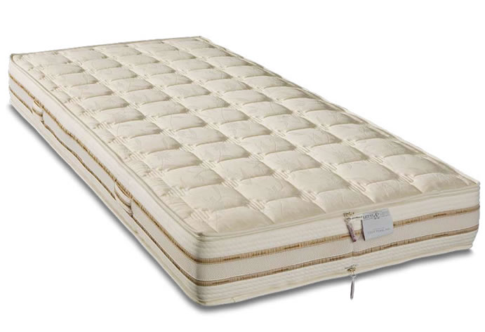 Il materasso ortopedico è sfoderabile e lavabile, realizzato con tessuti naturali (lato estivo in cotone 100% e lato invernale in lana merinos 100%) e rivestito con sanacotton ecologico, antiacaro ed anallergico.