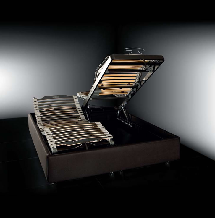 Apertura laterale Apertura frontale Sistema apertura facile Apertura frontale Tutta la comodità di una rete a doghe con in più la possibilità di usufruire di uno spazio in più; un progetto che si propone nel letto BOX con tre diverse tipologie di aperture del contenitore tramite pistoni a gas.