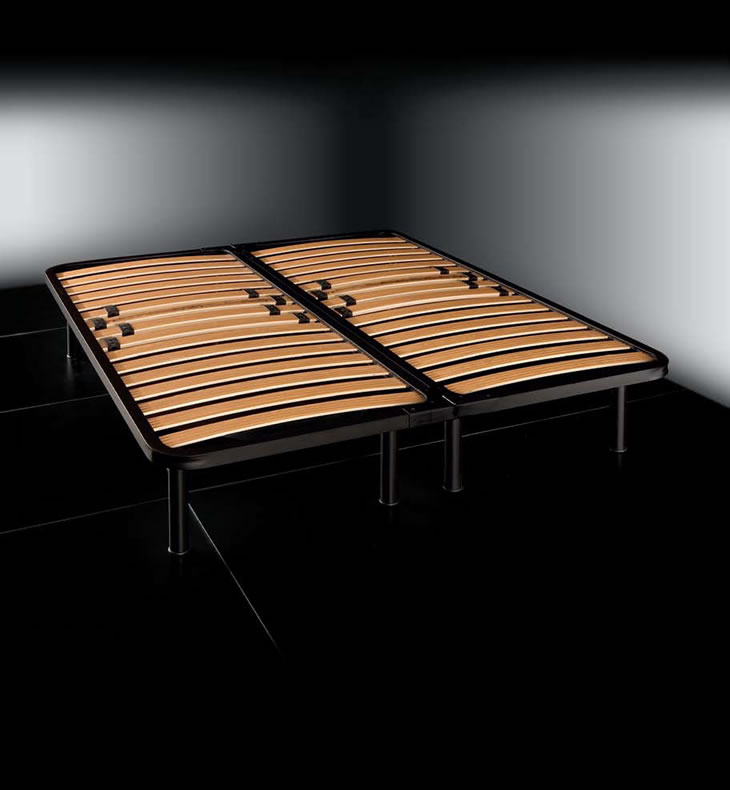 3 zone differenziate con 40 doghe (32+8 versione matrimoniale) in multistrato curvato e ondulato mm 70 con cursori di rigidità variabile nella zona centrale