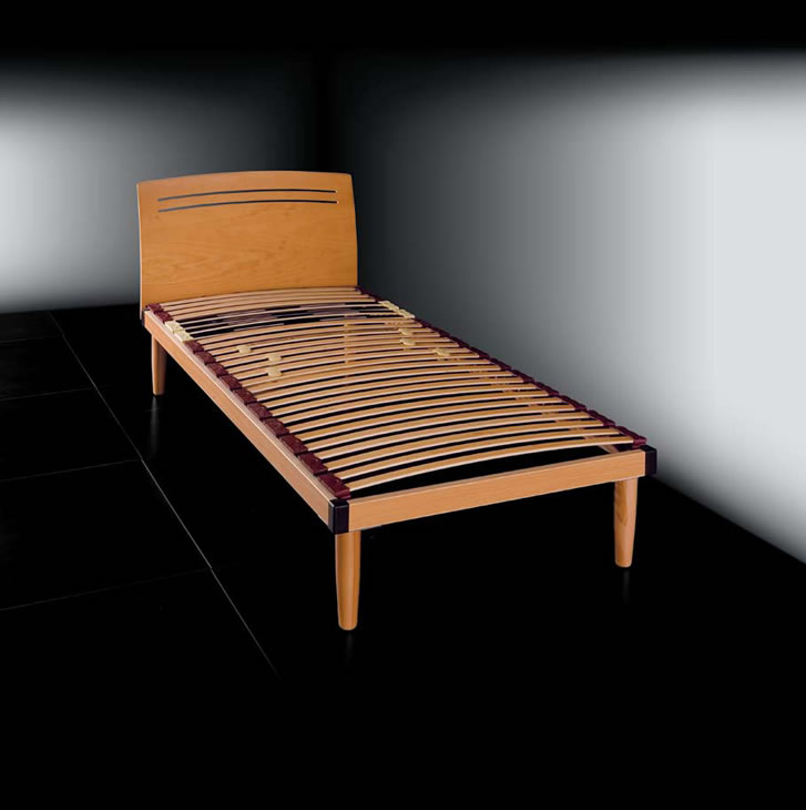 4 zone differenziate a doghe in multistrato mm 40 montate su balancelle basculanti in S.B.S. con cursori a rigidità variabile nella zona centrale (rete modello BEX)