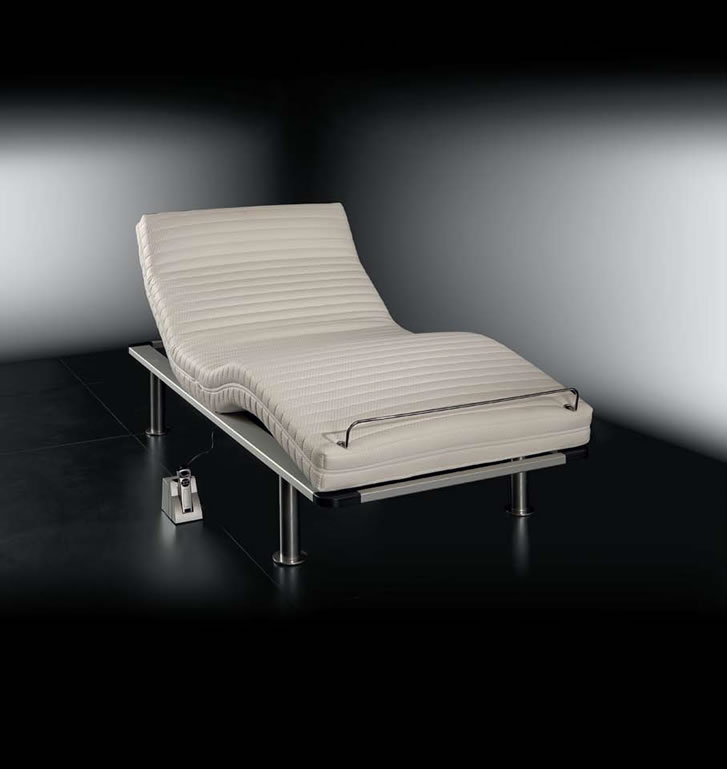 SLR è il massimo del comfort e della tecnica: con i suoi 4 motori a bassa tensione silenziosi permette di adattare nuca, schiena, arti superiori ed inferiori. In modo personalizzato alle proprie esigenze. Dispone di un comando a IR di facile utilizzo che prevede il disinserimento automatico della tensione e l’abbassamento meccanico d’emergenza.